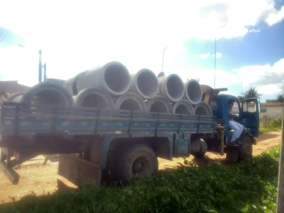 Chegada das manilhas que irão atender o sistema de drenagem do Bairro do Tambor