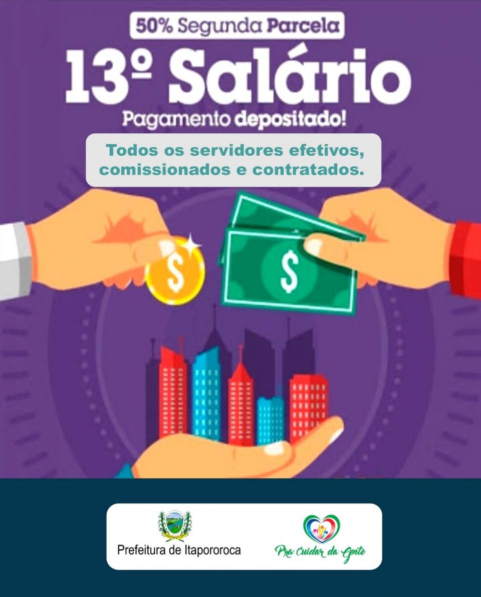 Pagamento da segunda parcela do 13º salário aos servidores da Prefeitura Municipal de Itapororoca-PB