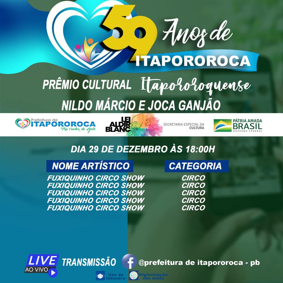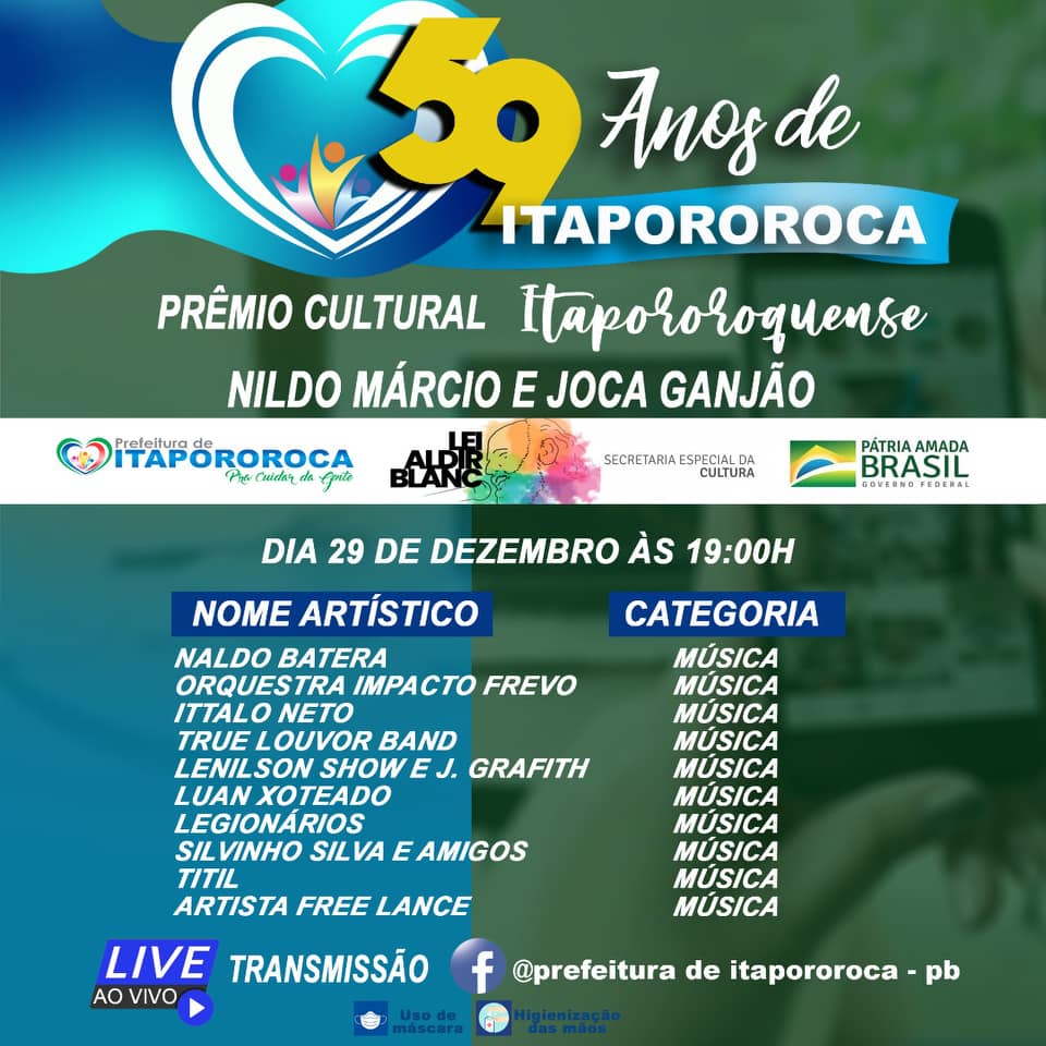 O projeto tem sua efetivação através do Governo Federal "Lei Aldir Blanc", e Itapororoca é uma das cidades contempladas.