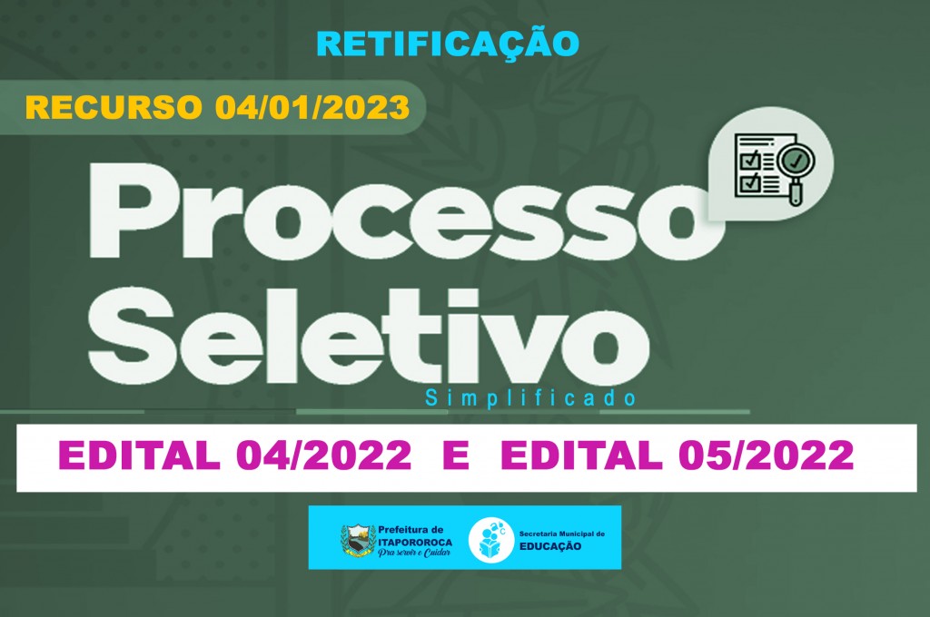 A nova data será dia 04/01/2023 para os editais Nº 04/2022 E EDITAL Nº 05/2022.